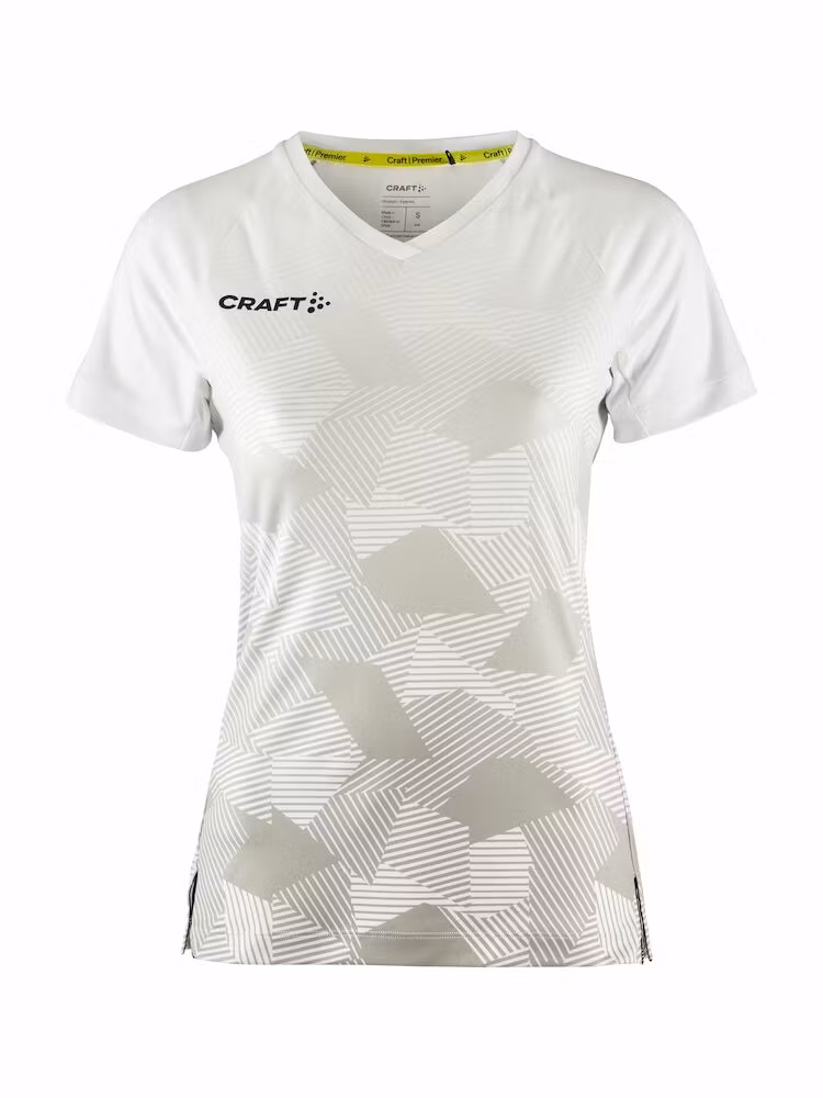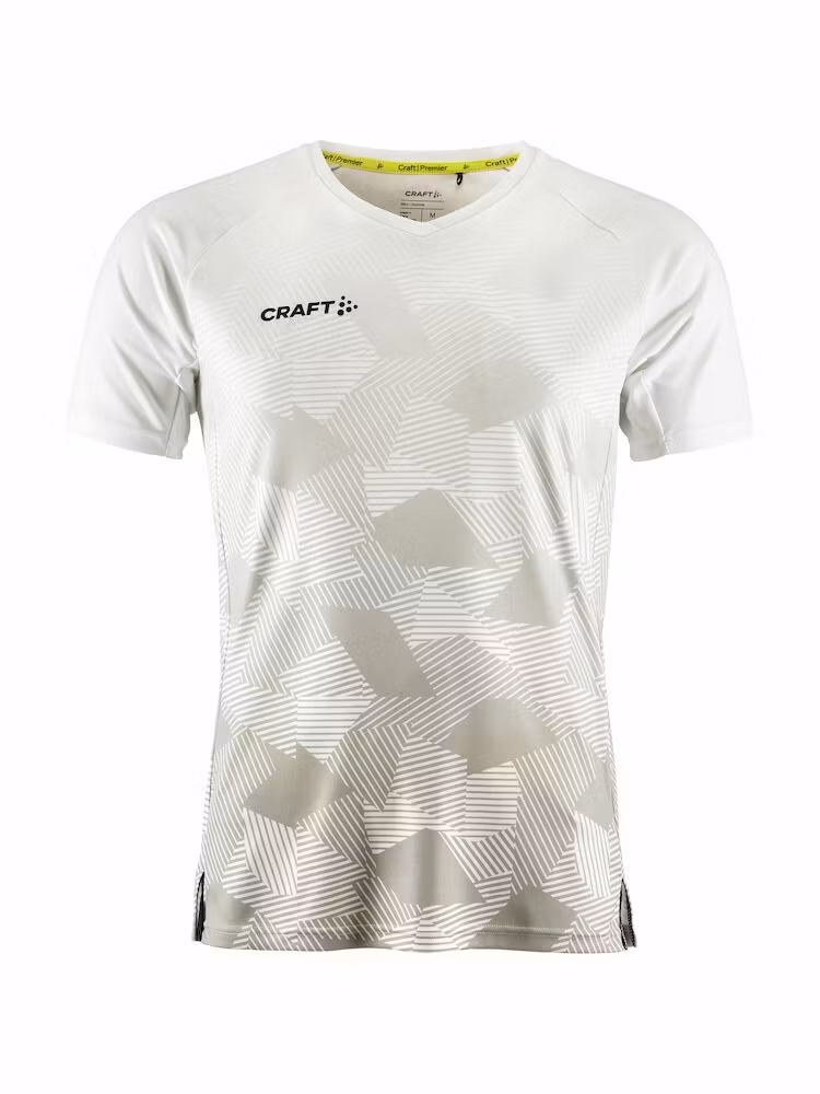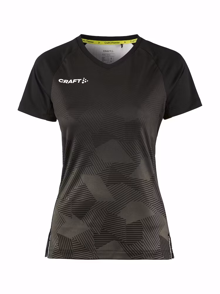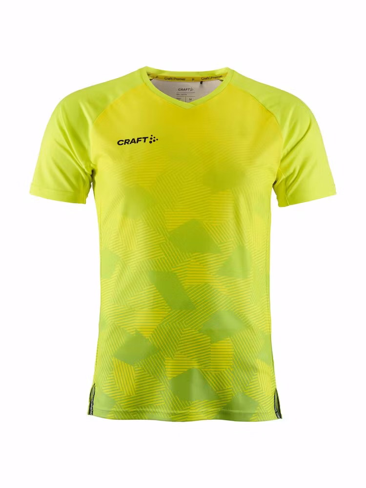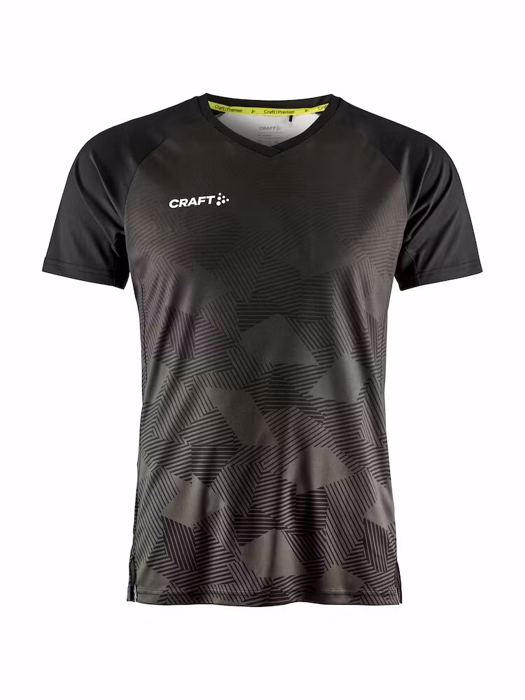 Craft Premier Fade Jersey är en högfunktionell matchtröja utvecklad för maximal prestation på högsta nivå. Denna premium matchtröja är gjord av ett tunt, mycket elastiskt och återvunnet polyestermaterial som i kombination med ergonomisk design och slitsar i sidorna ger optimal rörelsefrihet. Plagget har även V-ringad och tejpad krage samt matt print på fram- och baksidan.