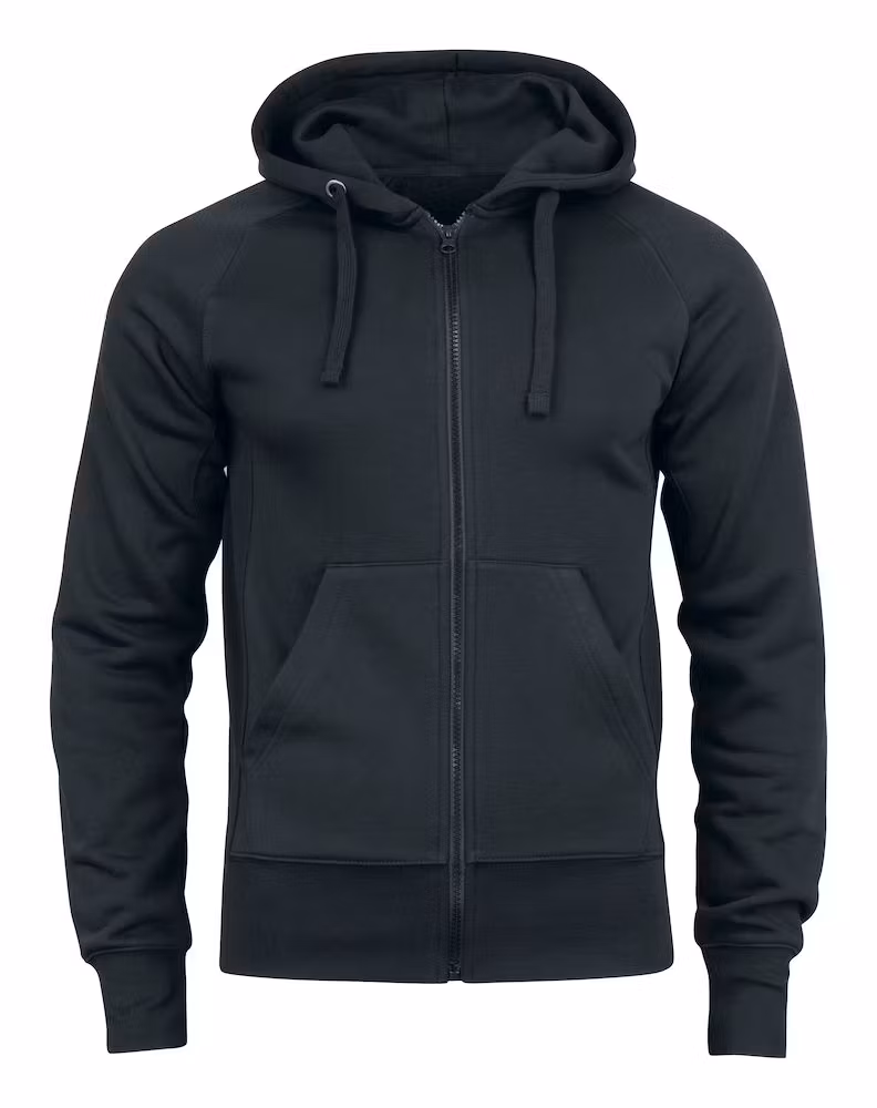 Hoodjacka från Clique med huva fodrad med samma material som tröjan. Känguruficka på magen med en extra dold ficka i sidsömmen. Raglanärm samt 2x2 rib i sidorna på tröjan, muddar i ärmavslut och nedtill. Rustika metallöljetter i dragskon med flata snören i huvan. Fiskbensmönstrat nackband och hängare. Smart lösning för hörlurarna.