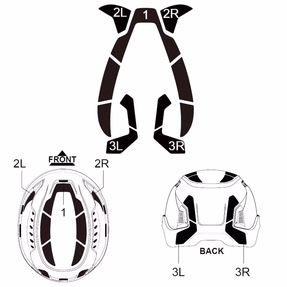 Komplett reflexkit för skyddshjälmen Zekler Zone. Reflexerna är utskurna för de avsedda ytorna och enkla att montera, vilket säkerställer optimal synlighet.
