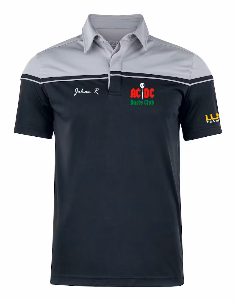 Performance-piké med ok i kontrasterande färg och dekorativ piping. Tyget har UV-skydd och är designad för en aktiv livsstil. En kortärmad piké som är mjuk och följsam att ha på sig och vars tyg har god fukttransporterande förmåga. Knappslå med gömda knappar. Tryckt med AC/DC Darts logotyp på vänster bröst, namntryck höger bröst, LUMA Teamwear logotyp på vänster arm och klubblogo på ryggen.