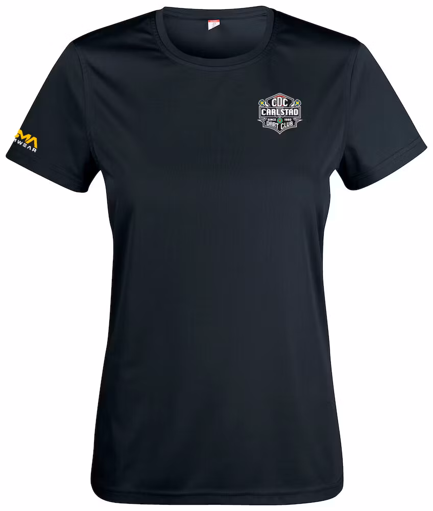 Träningst-shirt från Clique med CDC logotyp på vänster bröst och LUMA Teamwear på höger arm.