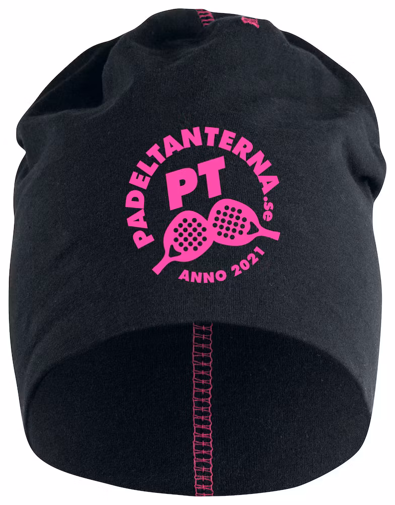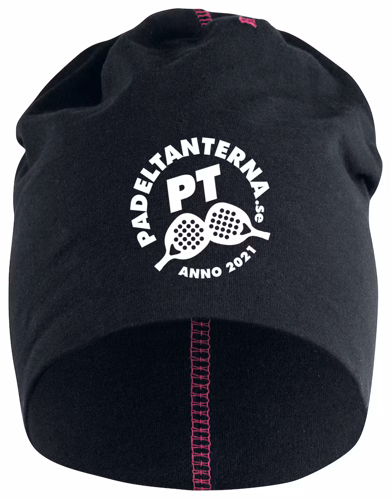 Dubbel single jersey mössa med sex flatlocksömmar i toppen. Padeltanterna logo tryckt i front.