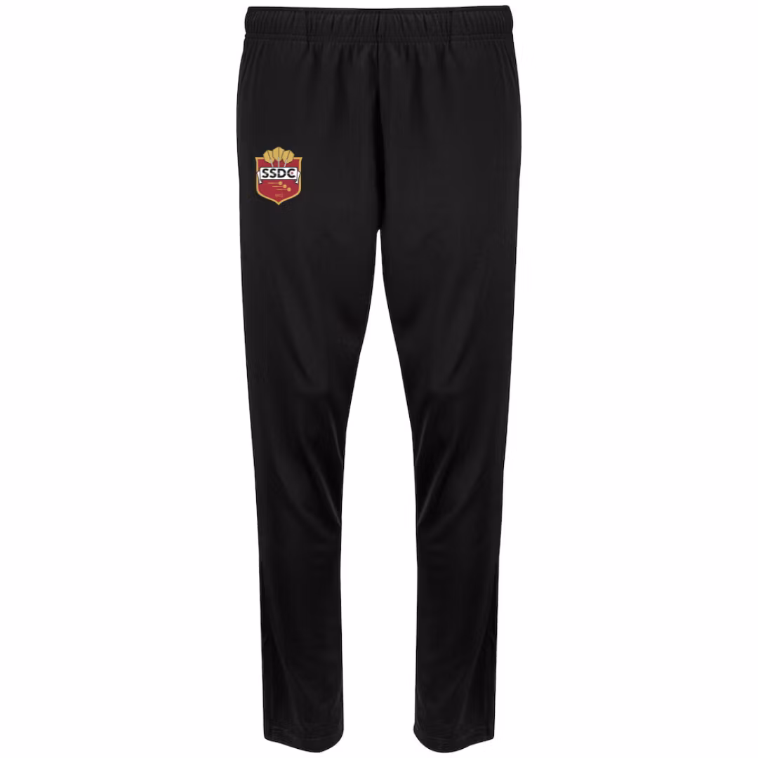 Sportiga byxor i funktionsmaterial perfekt för träning eller uppvärmning. Två sidofickor med dragkedja och dragkedja i benavslut. Resår och dragsko i midjan.