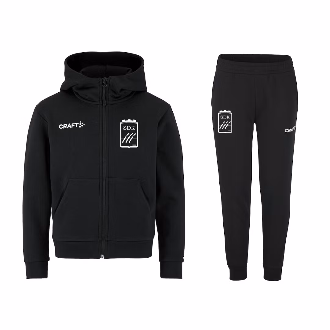 Set med tröja och byxa. Tryckt med Stenungsunds Dragkampsklubb på bröst och ben samt text på ryggen.
