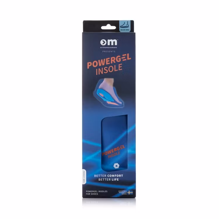 Powergel Insole är utvecklad med Ortho Movement teknik - avancerat dynamiskt system, effektivt stötdämpning och minskning av tryck på din kropp. Vår produktutvecklings filosofi för iläggssulor är att skapa produkter som stöder fotens naturliga funktion. Därför använder vi gelens funktion i olika former och densiteter och har skapat vårt nya dynamiska gel system som vi har idag, vilket ger stöd i linje med vår filosofi.