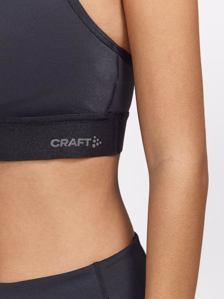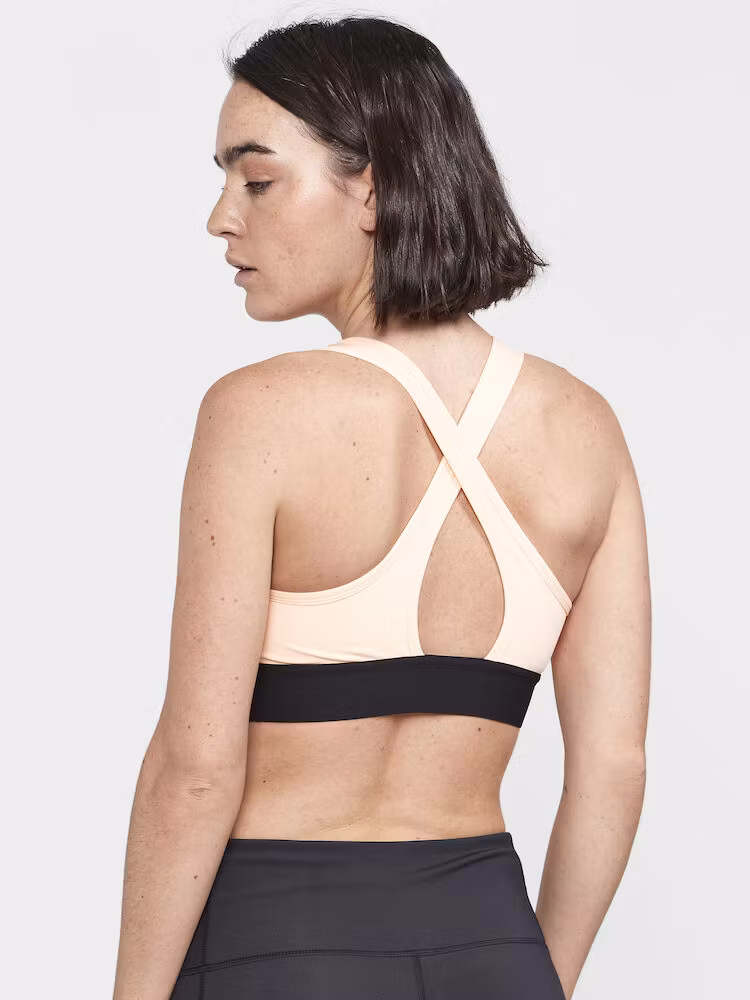 Craft Training Bra Padded är en mångsidig sportbehå med tight passform som ger stöd och hög komfort under medel- och högintensiva träningspass. Behån är gjord av återvunna och funktionella material och har löstagbara kupor.