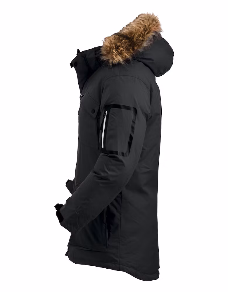 Clique Malamute är en varm och härlig jacka för de riktigt kalla dagarna. Jackan är unisexmodell med ribbade innermuddar i ärmslut, gummiklädda knappar och stora utanpåliggande fickor. Huva med fuskpäls, där både huva och päls kan tas av var för sig. Finns i två färger och unisexmodell.
