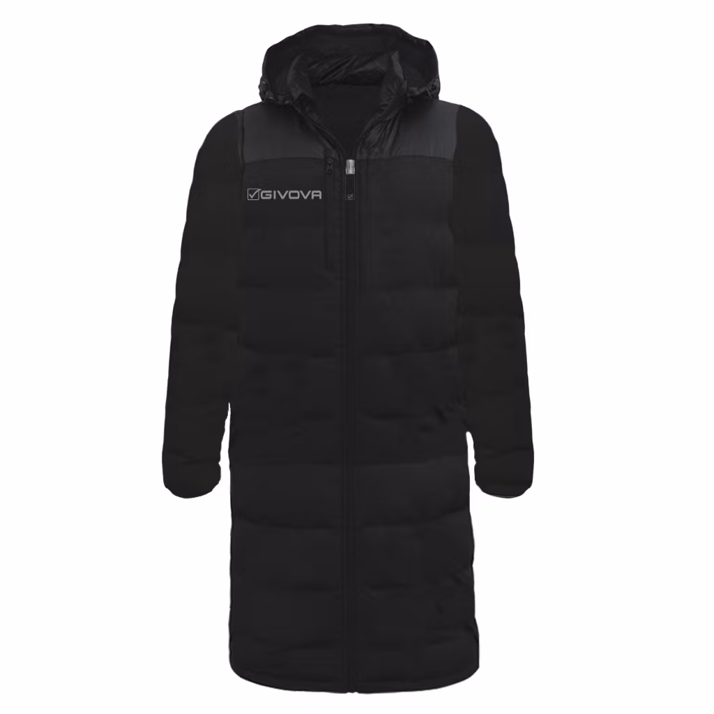 Fodrad parkas från italienska Givova. Utrustad med avtabar luva och bröstficka med dragkedja. Sidofickor med dragkedja och brodera logga på bröst.