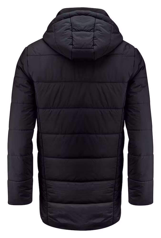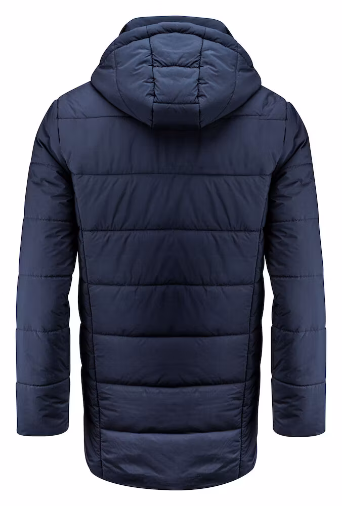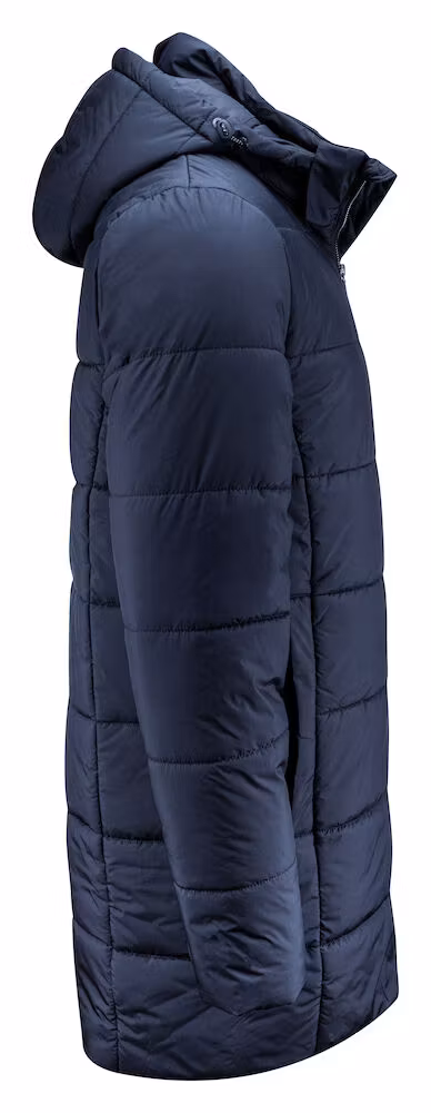 Längre vadderad jacka från James Harvest med tvåvägsdragkedja. Avtagbar huva, justerbar med elastiska snören. Ribbad krage och ärmslut. Två fickor med dragkedja på sidorna. Bröstficka med dragkedja inuti. Mjukt stickat tyg inuti sidofickorna. Förpackad i en biobaserad, komposterbar påse.
