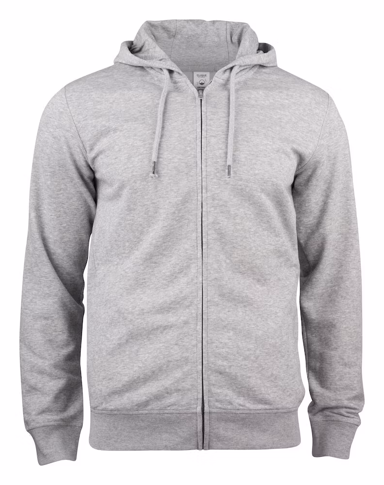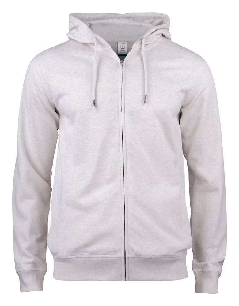 Cliques finaste hoodtröja med hel dragkedja i ekologisk bomull och återvunnen polyesterblandning. Hel YKK-dragkedja med antik yta. Huva med snören med metalländrar samt dekortiva flatlocksömmar ger en modern look till tröjan. CVC French Terry på insidan, fiskbensmönstrat nackband samt elastisk 1x1 rib i ärmavslut och nedtill. Utrustad med smart lösning för hörlurar.