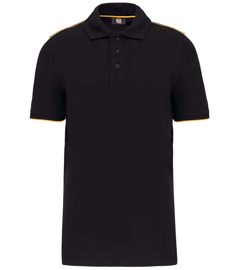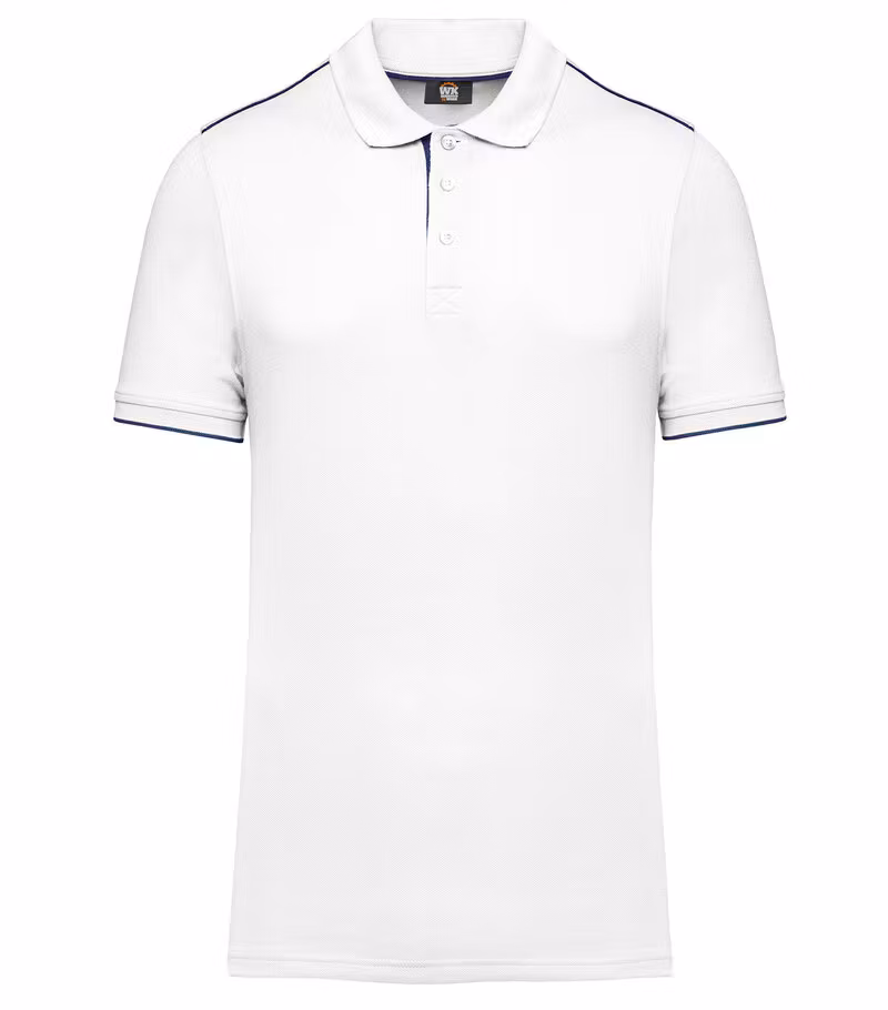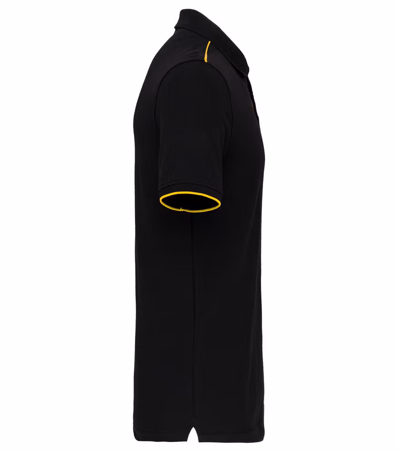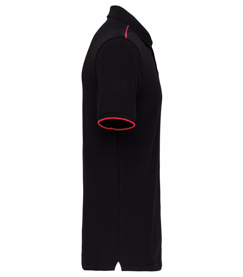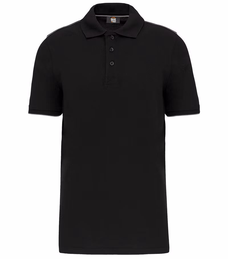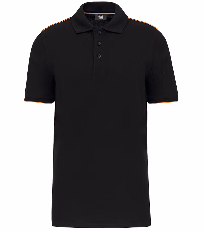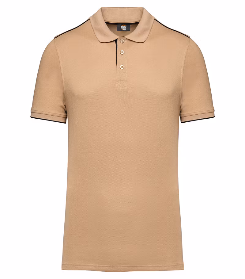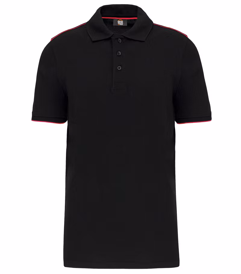 Pikétröja till herr tillverkad av polyester och kammad bomullspiké. Anti-pilling behandlad. Ribbstickad krage och ärmslut. Knappslå med tre ton-i-ton knappar. Tejpad hals i kontrastfärg. Kontrastfärg på knappslå, axlar, ärmslut och sidoslitsar. Dubbla översömmar på nederkant. Slits i sidorna. Kan tvättas i 60 grader.
