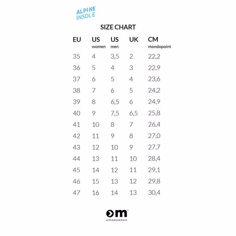 Ortho Movement Sulor Alpine finns i storlekarna 35 till 47.