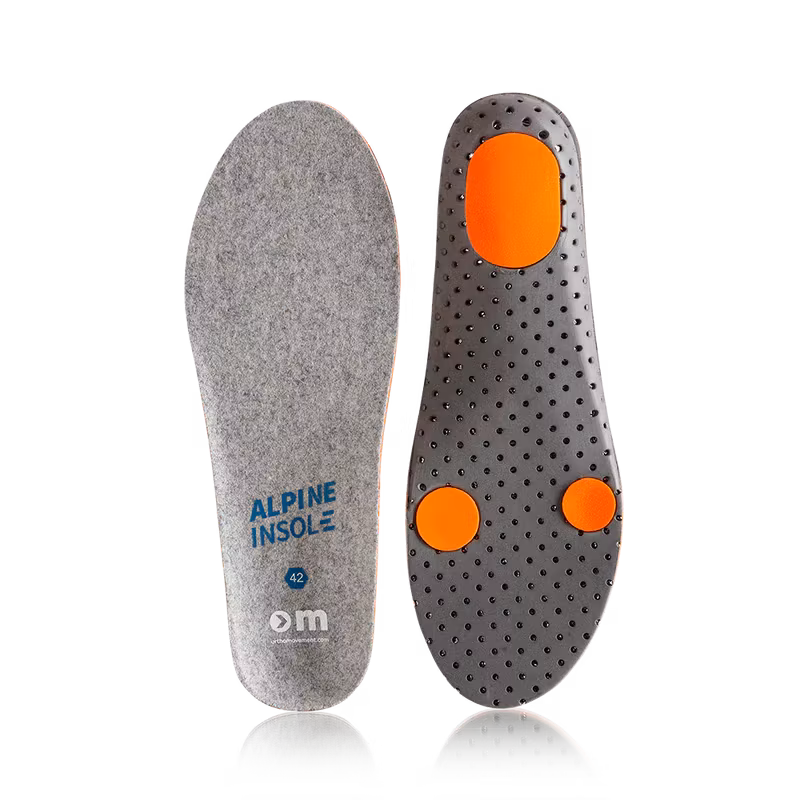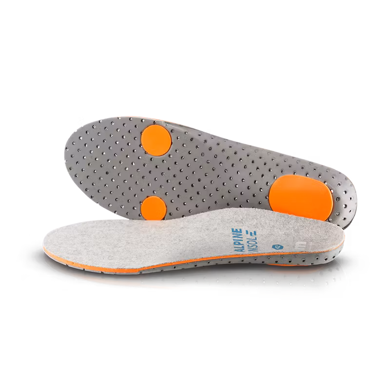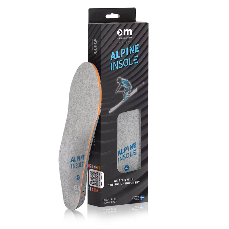 Alpine Insole från Ortho Movement är stötdämpande sulor till dina alpinpjäxor. Under skidåkning har du en ökad belastning med upp till cirka 40 ggr din kroppsvikt på grund av den flygfas och de excentriska krafter som uppstår vid eventuella svängar och hopp. Detta ställer stora krav på din utrustning och Ortho Movement har studerat rörelsemönster, tryckbelastning och fottyper på utförsåkare runt om i världen. Denna information och utformningen av dagens alpina pjäxor ligger till grund för Alpine Insole’s design och funktion. Syftet med Alpine Insole är att minska belastningen på åkarens muskler och leder, för att skapa bättre förutsättningar för alla skidåkare. Alpine Insole passar såväl nybörjare som avancerade åkare.De unika orangea D3O® zonerna ger hälen, leder och skelettet extra stötdämpning för att ge kroppen den avlastning som krävs. Formerna och placeringen av zonerna är speciellt designade efter utförsåkare tryckmönster under svängningar.