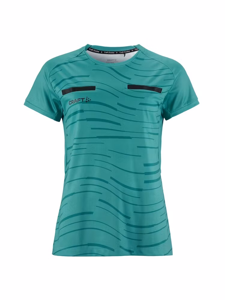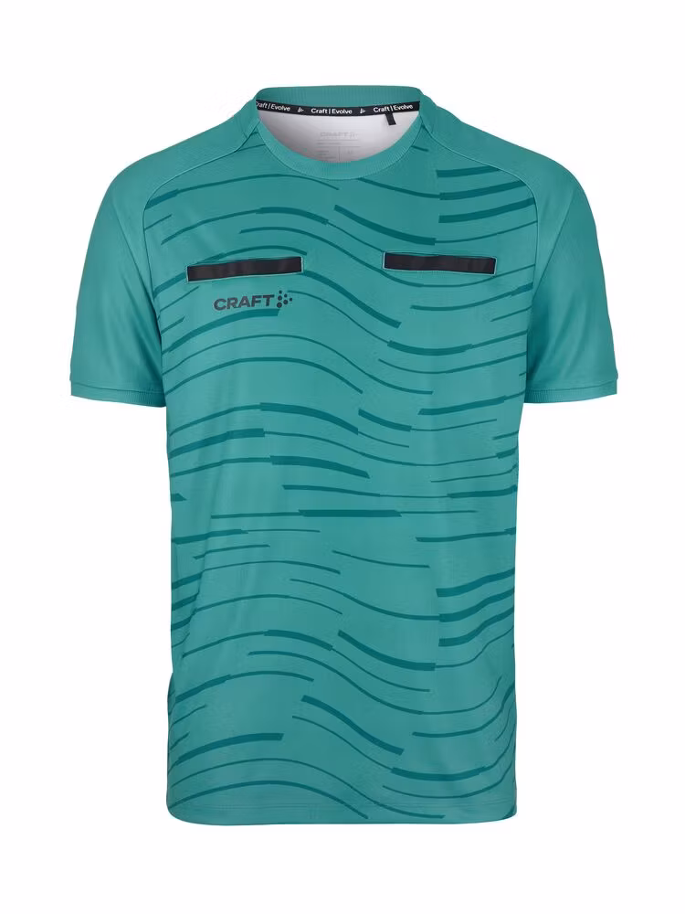 Craft Evolve Referee Jersey är en lätt domartröja som ger bra fukttransport under matcher. Tröjan är gjord av återvunna material för att minska miljöpåverkan och har meshpaneler i armhålorna för effektiv ventilation. Plagget har även raglanärmar för extra rörelsefrihet och två bröstfickor med kardborrestängning.
