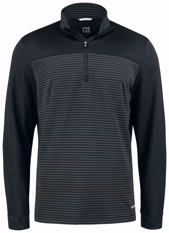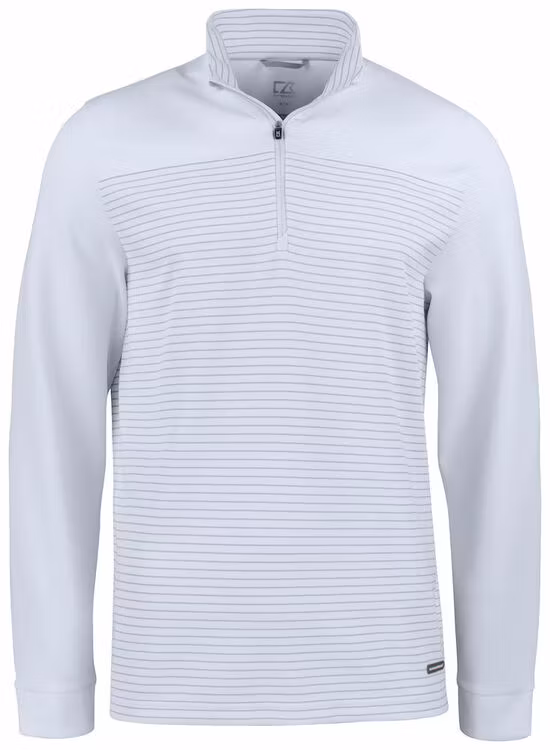 Snygg och funktionell golftröja från Cutter & Buck. Snygga ränder i all ära, men det är CB DryTec 50+UPF, som med sin fukttransporterande förmåga och inbyggda solskydd gör det här plagget så speciellt. Tyget är mjukt, stretchigt och ger känsla av komfort. Stående krage med dragkedja som är lätt att reglera, platta flatlocksömmar och reflekterande CB-märkning som gör att du syns i mörkret. Minimalistisk men stylish, är Traverse det perfekta plagget att ha på sig när du sportar eller varför inte tillsammans med ett par chinos för en avslappnad look.