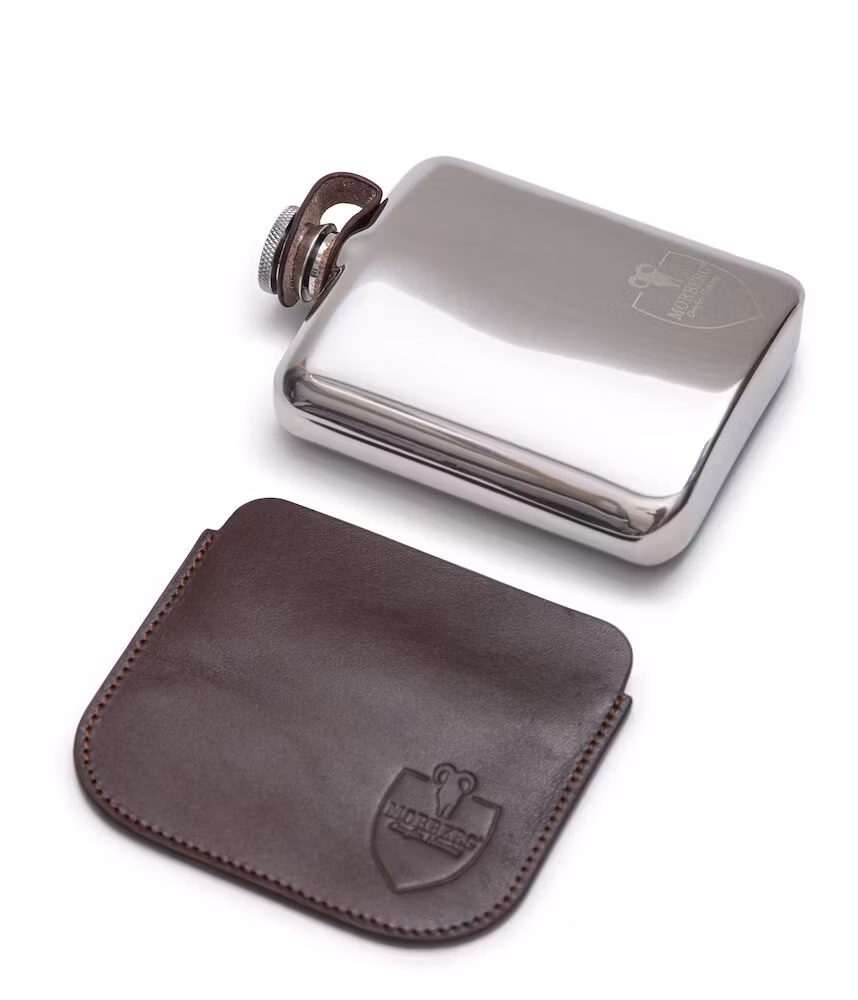 Fickplunta från Morberg By Orrefors av rostfritt stål som kommer med ett fodral av äkta läder.