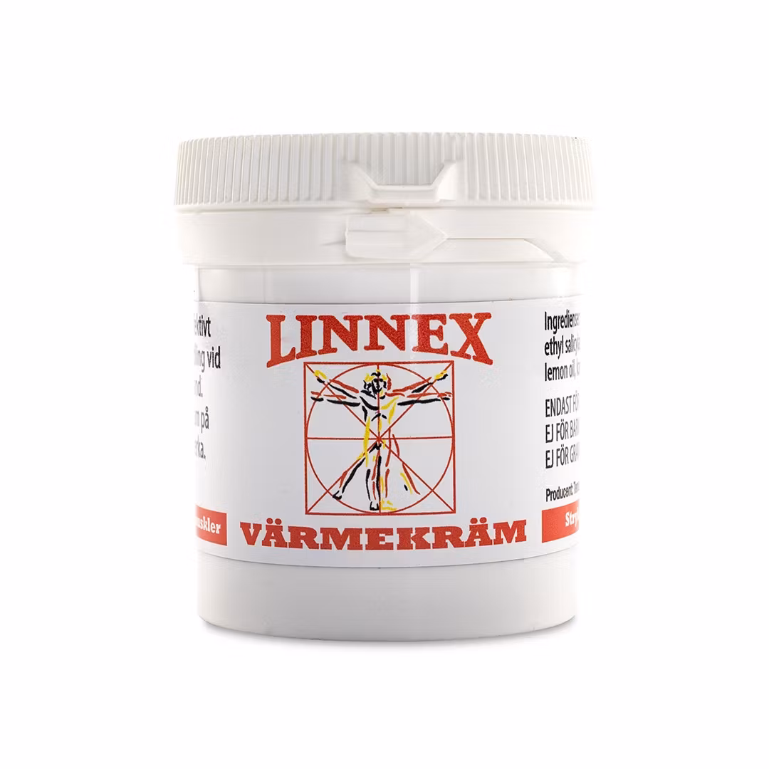 Värmekräm från Linnex som lindrar vid muskelbesvär samt verkar förebyggande mot sträckningar och belastningsskador. Värmekrämen är snabbverkande och masseras enkelt in på det aktuella området och har en unik djupgående och långtidsverkande funktion och är därför lite mildare än Linnex stick. Vid skadebehandling bör Linnex liniment masseras in var 4:e timme under ca 3 dagar. Effekten kommer efter ca 10-15 min.